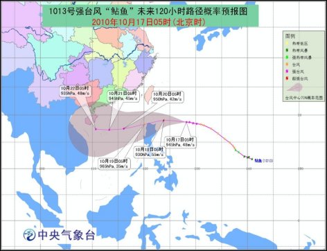 中新網(wǎng)10月17日電 據(jù)中央氣象臺預(yù)報,今年第13號強臺風(fēng)“鲇魚”于16日晚加強為強臺風(fēng),17日上午8時再度加強為超強臺風(fēng),成為今年最強的臺風(fēng)。受其影響,未來三天,中國南部海區(qū)都將掀起7~9級的大風(fēng)。