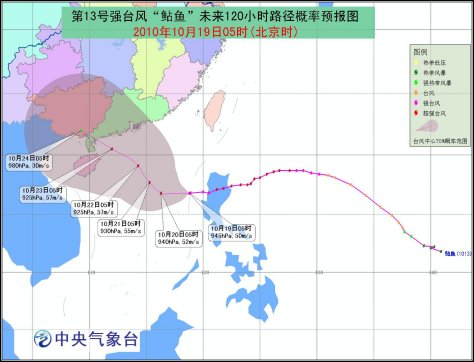 中新網(wǎng)10月19日電 中央氣象臺(tái)今早6時(shí)發(fā)布臺(tái)風(fēng)預(yù)警,今年第13號(hào)超強(qiáng)臺(tái)風(fēng)“鲇魚”以每小時(shí)10-15公里的速度繼續(xù)向偏西方向移動(dòng),強(qiáng)度將再次加強(qiáng)。