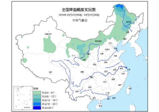 受冷空氣影響,今天5時(shí)較昨天5時(shí),黑龍江中西部、吉林西部、遼寧西部、內(nèi)蒙古、甘肅中部等地降溫6~12℃,黑龍江西北部出現(xiàn)16~20℃降溫。“北極”漠河和塔河一帶今晨的氣溫只有零下20℃至零下23℃。