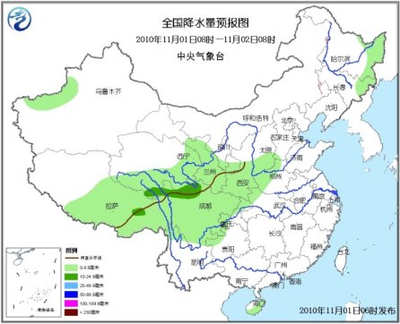 中新網(wǎng)11月1日電 中央氣象臺預報,未來三天,青藏高原東部有較強降水,具體為西藏東部、青海東南部、川西高原北部等地的部分地區(qū)有中到大雪,局地暴雪。另外,新疆南疆西北部、東北地區(qū)東北部、西北地區(qū)東南部及祁連山地區(qū)、華北西南部、河南西部、湖北西部、四川大部、重慶、云南北部、貴州北部、海南大部、臺灣東部等地還會出現(xiàn)小到中雨(雪)或雨夾雪。