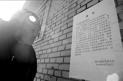 因兩名村民多次到鎮(zhèn)政府、區(qū)政府舉報本村問題,門頭溝區(qū)龍泉鎮(zhèn)滑石道村村委會于10月26日發(fā)出通告,要求兩戶村民在今年11月30日之前,將戶口遷出滑石道村,否則,永遠停發(fā)村里的一切福利。