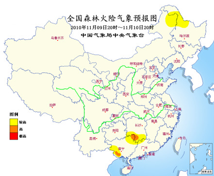 此外,干燥少雨的天氣同樣也使得森林火險氣象等級升高。中央氣象臺預(yù)計(jì),11月9日20時至11月10日20時,黑龍江西北部、內(nèi)蒙古東北部、湖南南部、廣東北部、廣西東北部和西南部的部分地區(qū)森林火險氣象等級較高,其中,湖南西南部、廣西東北部和西南部的局部地區(qū)森林火險氣象等級高,請當(dāng)?shù)赜嘘P(guān)部門注意防火。
