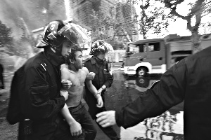昨日下午5時,周先生在靜安中心醫(yī)院簡單包扎被玻璃劃傷的手后,四處尋找走散的妻子。