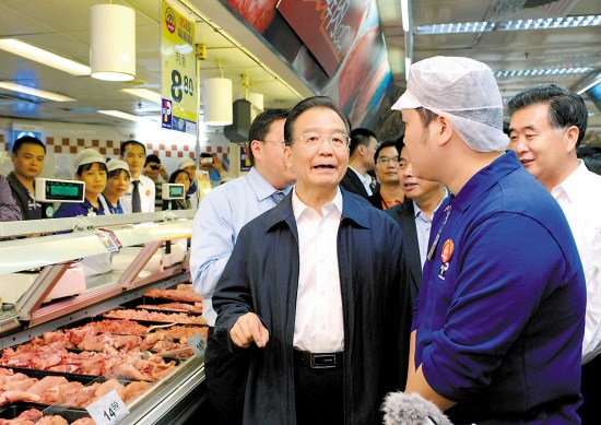 溫家寶邊看邊問,了解物價(jià)變化對(duì)市民生活的影響。他說(shuō),市場(chǎng)供求和物價(jià)關(guān)系群眾的切身利益,必須高度重視。國(guó)務(wù)院正在擬定措施,抑制價(jià)格過快上漲。他叮囑廣州市有關(guān)負(fù)責(zé)人要千方百計(jì)保持供貨渠道暢通,保證市場(chǎng)供應(yīng),加強(qiáng)監(jiān)管,維護(hù)市場(chǎng)秩序。