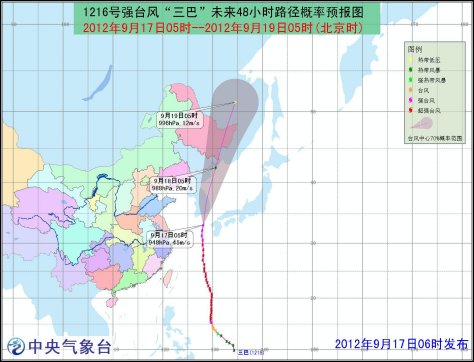 受“三巴”和冷空氣的共同影響,17日08時到18日08時,黃海、長江口區(qū)、杭州灣、東海西北部、臺灣以東洋面、浙江中北部沿海將有7-9級大風,其中黃海東南部和東海東北部的風力有10-11級,“三巴”中心經(jīng)過的附近海域風力可達12-14級;黑龍江東部、吉林東部等地有大雨,黑龍江東南部與吉林東北部的部分地區(qū)有暴雨,局地大暴雨(100-120毫米)。 [分享到微博]