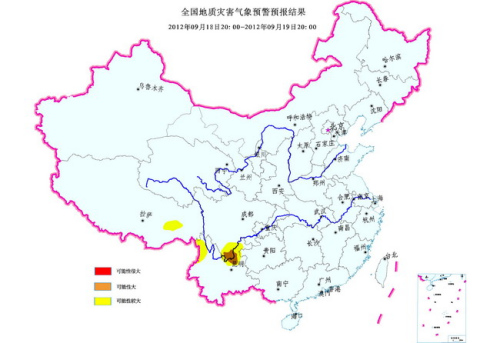 中新網(wǎng)9月19日電 國(guó)土資源部今日在其官方網(wǎng)站上發(fā)布9月18日-19日全國(guó)地質(zhì)災(zāi)害氣象預(yù)警預(yù)報(bào)結(jié)果。預(yù)報(bào)稱,云南北部局部發(fā)生地質(zhì)災(zāi)害的可能性大。