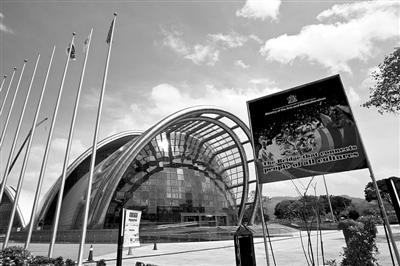 昨日,特立尼達(dá)和多巴哥首都西班牙港,國(guó)家表演藝術(shù)中心沐浴在陽(yáng)光下,該項(xiàng)目由中國(guó)援建。新華社記者 張加揚(yáng) 攝