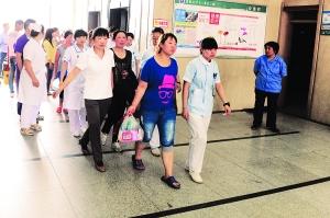 昨日,13時33分,該院燒傷外科診室的大門被打開,部分傷情較輕的患者在醫(yī)務(wù)人員的攙扶下來到患者專用電梯前,準備逐一進行轉(zhuǎn)院工作。