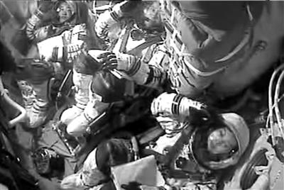 由于失重飄浮,航天員行動起來不像在地面上那樣自如,坐立不穩(wěn)搖搖晃晃,稍一抬頭仰身就有可能來個大翻身,彎腰時又可能翻筋斗,所以一切動作都得小心翼翼。