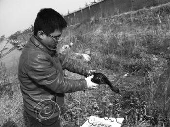 志愿者后來(lái)又在草叢中找到了兩只已經(jīng)死亡的鵲鴨。一上午的時(shí)間,志愿者共發(fā)現(xiàn)了11只渾身油污的鳥(niǎo),其中有6只死亡。當(dāng)日下午,志愿者在賓館用各種方法,甚至用了洗發(fā)水,但油污就像瀝青一樣粘稠,無(wú)法清理干凈,在這個(gè)過(guò)程中,又有3只鳥(niǎo)死亡。