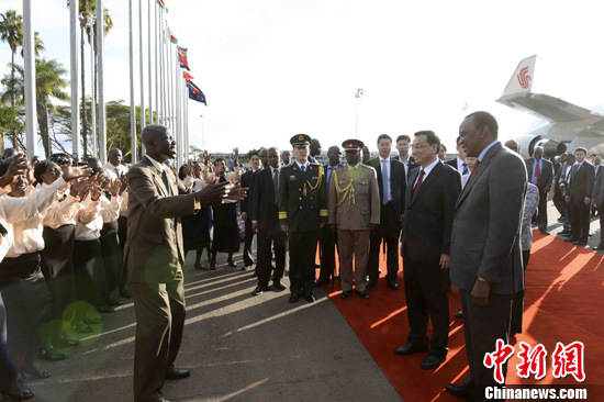 離開肯尼亞時,肯尼亞總統(tǒng)肯雅塔夫婦和副總統(tǒng)魯托到機場送行,機場舉行了隆重的歡送儀式。