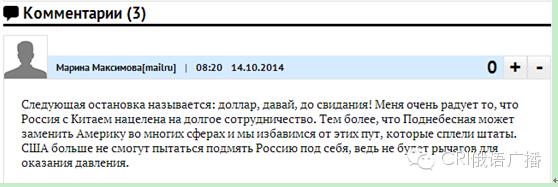 網(wǎng)友馬克西莫娃評(píng)論說(shuō):“下一步就該和美元說(shuō)再見(jiàn)了!我非常高興地看到,俄羅斯與中國(guó)致力于長(zhǎng)期合作。中國(guó)將在眾多領(lǐng)域取代美國(guó),我們將擺脫美國(guó)的羈絆。美利堅(jiān)再也不可能把我們踩在腳下了,因?yàn)橄蛭覀兪〾旱墓ぞ咭呀?jīng)失效。”