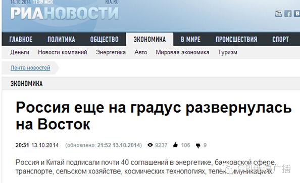 普京下令組建的“今日俄羅斯”國(guó)際新聞通訊社:對(duì)李總理訪問(wèn)俄羅斯的成果進(jìn)行了全面梳理與介紹,其中說(shuō)道,“中俄簽署了將近40項(xiàng)合作協(xié)議,涉及能源、金融、交通、航空航天等多個(gè)領(lǐng)域,這顯示出,中俄合作又向前跨一大步,俄羅斯向東再轉(zhuǎn)一度”。