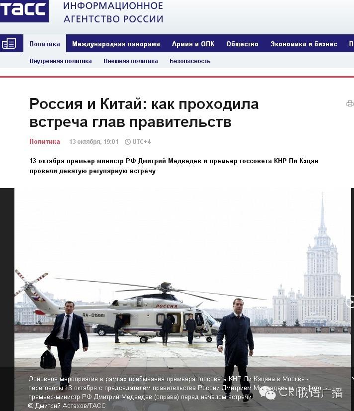 俄羅斯三大通訊社之一俄通社-塔斯社:用10張照片回顧和總結(jié)了李克強(qiáng)總理的莫斯科之行。