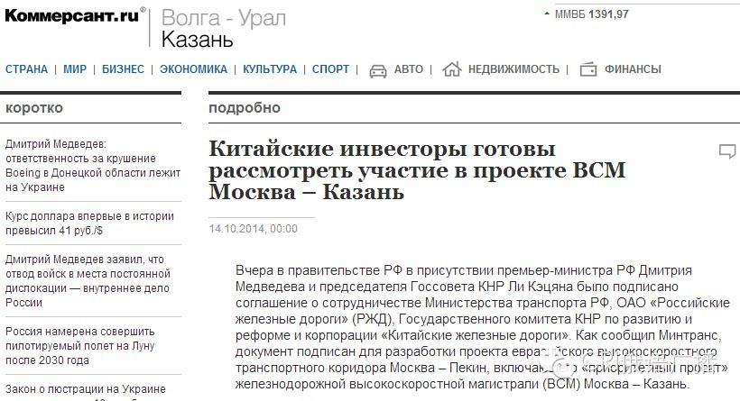 俄羅斯主要商業(yè)化報(bào)紙之一“生意人報(bào)”:中國(guó)參與俄羅斯的高鐵項(xiàng)目,這是李總理訪問(wèn)期間最受關(guān)注的話題之一。如果連接中國(guó)、俄羅斯和哈薩克斯坦的高速鐵路網(wǎng)建設(shè)順利推進(jìn),將極大促進(jìn)“絲綢之路經(jīng)濟(jì)帶”戰(zhàn)略的實(shí)施。