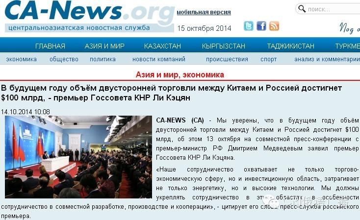 中亞新聞社:中俄雙邊貿(mào)易額將達(dá)到1000億美元,而中俄合作對(duì)中亞地區(qū)的發(fā)展具有決定性影響,因此,中亞媒體格外關(guān)注兩大國(guó)的合作動(dòng)向。