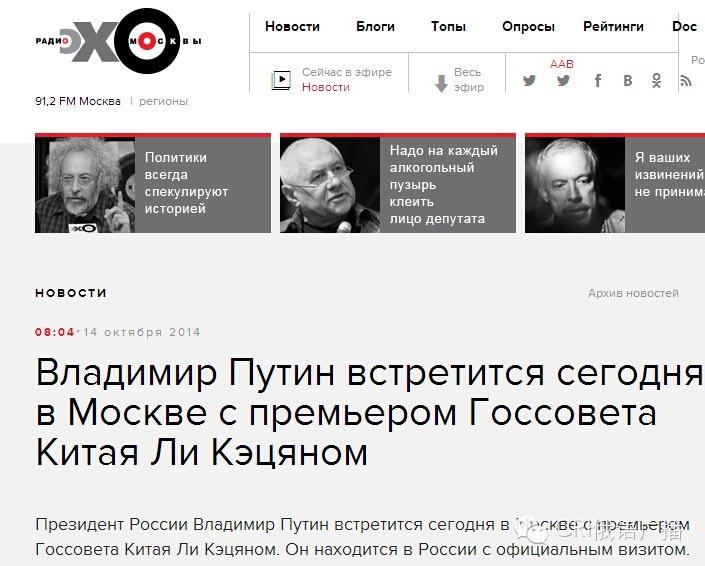 “莫斯科回聲”廣播電臺(tái):在會(huì)見(jiàn)李克強(qiáng)時(shí),普京表示,將在亞太經(jīng)合組織成員國(guó)領(lǐng)導(dǎo)人非正式會(huì)晤期間,與習(xí)近平主席在北京舉行會(huì)晤。在不到一個(gè)月的時(shí)間內(nèi),兩國(guó)高層領(lǐng)導(dǎo)先后會(huì)面,其重要意義不言而喻。