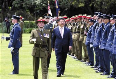 11月20日,國家主席習(xí)近平在惠靈頓出席新西蘭總督邁特帕里舉行的歡迎儀式。新華社記者 姚大偉 攝