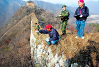 昨天,第四階段北京段長城踏查工作在延慶縣永寧鎮(zhèn)馬蹄灣村正式展開(見上圖)。至此,北京段長城的測繪工作已經完成一半,在前期的測繪中,測繪專家和市文物專家發(fā)現了許多關于長城的新信息,如實際現存量多于此前預估數,統(tǒng)一朝代的長城的不同結構以及發(fā)現了多處窯址等,這些都是此前關于長城文獻的記載中所沒有的。本階段預計將有懷柔、平谷、門頭溝三個區(qū)基本完成現場調查測繪工作,預計全部測繪將在明年結束。屆時,北京段長城的具體、翔實數據將會第一次明確。