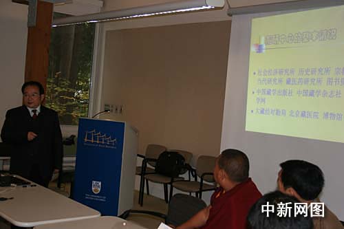 與加拿大的大學(xué)和研究機(jī)構(gòu)進(jìn)行學(xué)術(shù)交流是代表團(tuán)此行的主要目的。今天上午,代表團(tuán)來(lái)到位于溫哥華的不列顛哥倫比亞大學(xué),與該校亞洲研究院從事藏學(xué)研究的教授和博士、碩士研究生進(jìn)行學(xué)術(shù)座談。代表團(tuán)成員逐一介紹了所在機(jī)構(gòu)的情況以及各自研究的領(lǐng)域。