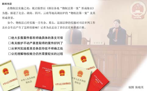到今天為止,物權(quán)法已經(jīng)實施一月余。一個多月來,物權(quán)法對司法審判及社會生活有哪些影響?記者對此進(jìn)行了深入采訪。