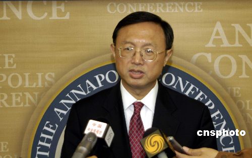 當(dāng)天早些時候,楊潔篪在安納波利斯會議上發(fā)表講話,闡述了中國政府在中東問題上的立場。 (記者 李學(xué)軍 葛相文)