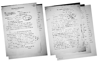 第一件檔案是1937年12月14日柏林時(shí)間下午3點(diǎn),美國駐德國大使陶德(Dodd)經(jīng)國務(wù)卿赫爾(Hull)給羅斯?偨y(tǒng)的密電(美國外交關(guān)系檔案RG59—793.94/11631)。