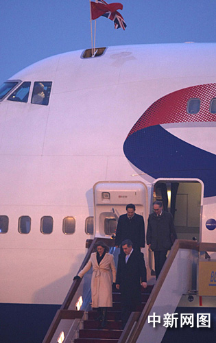 七時(shí)十五分,布朗首相的專機(jī)抵達(dá)北京首都機(jī)場。身穿深色大衣的布朗和夫人薩拉面帶微笑,一起走下舷梯,與前來接機(jī)的中國外交部部長助理吳紅波握手寒暄。