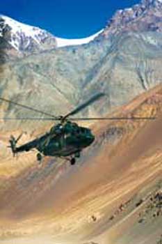 “最難飛到的是什布奇邊防連”,飛行員說。這個(gè)距離首都最遠(yuǎn)的邊防連處于四周全是高山的山谷中,直升機(jī)降落時(shí)要慢慢地像片樹葉掉下去,起飛時(shí)又盤旋著上升高度,小心翼翼地防止旋翼觸到大山上。