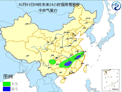 受冷暖空氣的共同影響,預(yù)計今天白天到夜間,湖南大部、貴州東南部、湖北東南部、安徽南部、江蘇西南部、浙江北部、江西北部以及四川東南部、云南東北部等地有中到大雪,其中,湖南中南部、安徽南部、江西北部、浙江西北部等地的局地有暴雪。