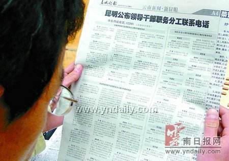 應永生(以下簡稱“應”):近日,我們對公布的電話是否有誤、是否接得通進行了抽查。抽查表明大多數(shù)電話都有人接聽,但也有部分電話是因為領(lǐng)導干部正在參加昆明市的“兩會”而又未安排人接聽,極少數(shù)電話在校對或印刷時有誤,有的電話撥不通,我們正在查原因。