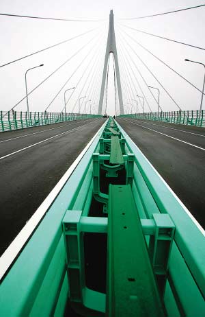 世界最長的跨海大橋——杭州灣跨海大橋全線貫通,不日將通車。杭州灣跨海大橋是同三國道跨越杭州灣的便捷通道,北起嘉興市海鹽鄭家埭,止于寧波市慈溪水路灣,全長36公里。大橋通車后,上海到寧波的陸路距離將縮短120多公里。