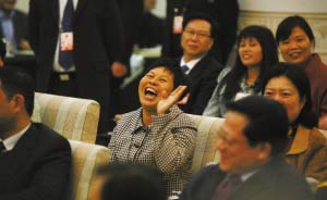 在去用晚餐的電梯里,湛江市徐聞縣龍?zhí)伶?zhèn)東角村村委會(huì)主任陳雪榮成了廣東團(tuán)里的明星代表。這個(gè)矮矮瘦瘦,皮膚黝黑的女代表用雙手捂著漲紅的臉笑,“真沒(méi)想到汪洋書(shū)記能現(xiàn)場(chǎng)幫我們漲了工資!”