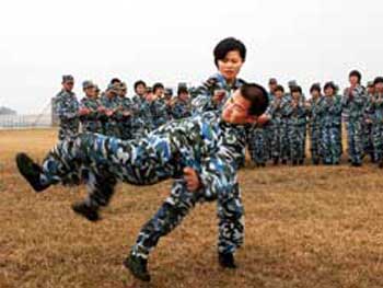 兩棲女子偵察隊受命擔(dān)負400米障礙、散打、格斗、沖鋒槍速射等6個課目的演示任務(wù)。