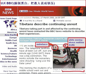《驚!西方媒體竟然這樣做西藏事件的新聞!》就是較早的一篇對(duì)西方媒體報(bào)道指錯(cuò)的文章,該文章還配有11張圖片,詳細(xì)地指明了這些媒體的錯(cuò)誤所在。
