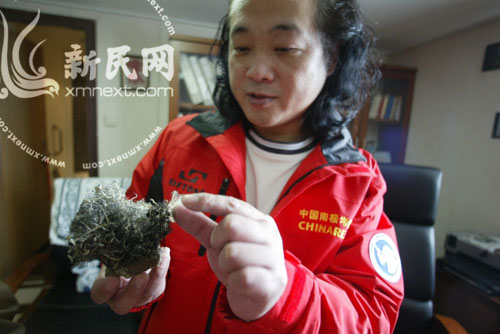 "雪龍?zhí)?抵達(dá)上海 科考隊(duì)員展示"南極地衣"(圖)