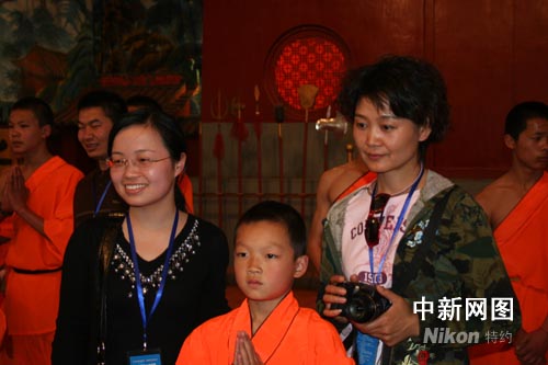 “網(wǎng)上看河南”采風(fēng)團女記者與習(xí)武者合影留念。