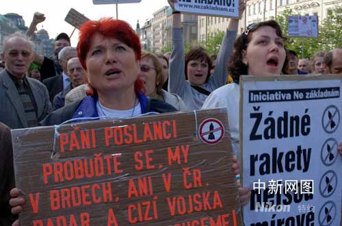 圖:布拉格再次爆發(fā)游行反對美國設(shè)反導(dǎo)雷達基地