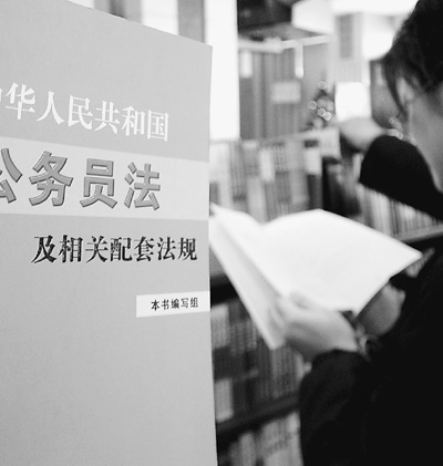 湖北宜昌一讀者在書(shū)店查看《公務(wù)員法及相關(guān)配套法規(guī)》讀本。吳明攝