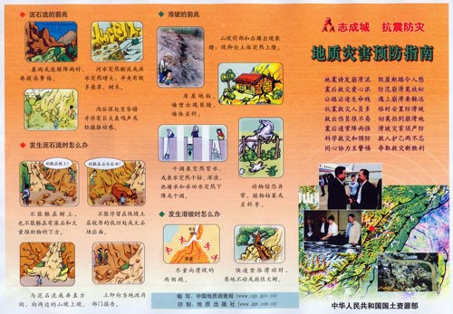 中新網(wǎng)5月18日電 國(guó)土資源部連夜趕制《地質(zhì)災(zāi)害預(yù)防指南》折頁(yè)100萬(wàn)份。第一批(20萬(wàn)份)將于今日運(yùn)往四川災(zāi)區(qū)。廣泛普及這種簡(jiǎn)單實(shí)用的地質(zhì)災(zāi)害避防常識(shí),實(shí)行科學(xué)抗災(zāi)救災(zāi),可以避免和減少傷亡損失。