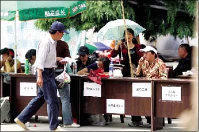 除政府部門外,法院和檢察院也在廣場上擺出攤子接待市民?h法院一位女副庭長說,受地震影響,法院無法開庭審理各種案件,原本在地震后的一段時間里應該開庭審理的案件當事人可能會對案件無所適從。法院接待處就是為了向市民做法律方面的解釋工作。她透露,昨天縣法院要求民事、刑事及立案庭在近兩天內(nèi)開始搭建臨時法庭,并盡快恢復開庭審理案件。她說,按法律規(guī)定,遇地震等重大災害,法院可以中止審理各種案件,但截至目前,該院沒有一起案件被中止。法院已開始清理所有積案,遇有當事人在外地無法返回茂縣,或因重建家園而無法參加庭審的情況,法院將與其取得聯(lián)系,辦理延期開庭手續(xù)。