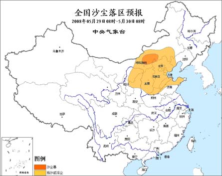 中新網(wǎng)5月29日電 中央氣象臺(tái)今天早晨六點(diǎn)鐘繼續(xù)發(fā)布沙塵天氣預(yù)報(bào):