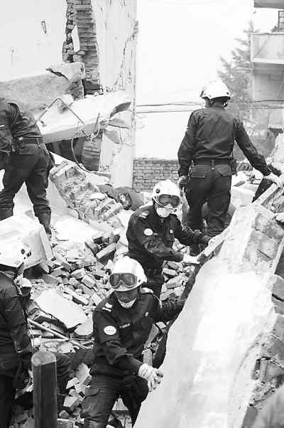 日本救援隊(duì) 為使遺體保持完好 隊(duì)員用手清理碎石