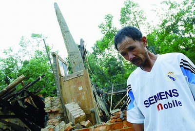 張德林很幸運,在他剛被老伴叫出屋外時,房子就被龍卷風(fēng)掀倒了。而殷德金很不幸,冰雹過后,他從外面回到家時,房屋全部倒了,他哭喊著叫著妻子,但只有大山的回應(yīng)。村民們聞訊趕來后,從廢墟中扒出了他的妻子,可她再也聽不見人們的叫喊了。