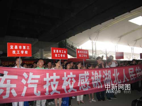 中新網(wǎng)武漢6月7日電 (記者 艾啟平)7日早上8時(shí)12分,首批來自四川地震災(zāi)區(qū)的411名技校生,乘坐成都開往武昌的T248次列車抵達(dá)武昌火車站。這些學(xué)生來鄂就讀的學(xué)費(fèi)、教材文具費(fèi)和生活費(fèi)等,將由負(fù)責(zé)接收的學(xué)校承擔(dān)。湖北省副省長張岱梨、省政府副秘書長李元江等前往車站迎接。