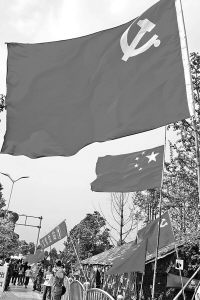 飄揚的紅旗在災(zāi)區(qū)隨處可見(張雷/攝)