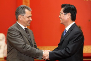 中國(guó)駐俄羅斯大使劉古昌與俄緊急救災(zāi)部部長(zhǎng)紹伊古