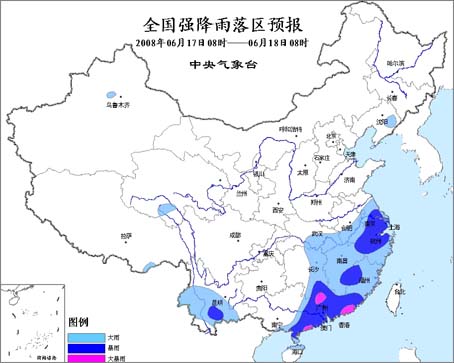 中新網(wǎng)6月17日電 據(jù)問天網(wǎng)消息,中央氣象臺(tái)今天早晨六點(diǎn)鐘繼續(xù)發(fā)布暴雨預(yù)報(bào):