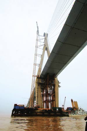 這樣的設(shè)計(jì)在施工中遇到不少困難,特別是大跨徑斜拉橋,如進(jìn)入臺(tái)風(fēng)期鋼箱梁尚未安裝完成的話,將對(duì)大橋造成極大威脅,“這是整個(gè)工程中最難的一個(gè)部分,也是最關(guān)鍵的!彼f。