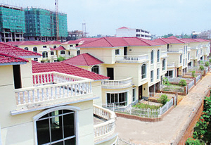 在景德鎮(zhèn)市西山路口附近,幾排別墅,鱗次櫛比,掩映在樹叢和民房之中。別墅均為紅瓦黃墻的三層小樓,房前都帶單獨小院和車庫。7月22日上午,記者來到這里時,小區(qū)入口的大門已經(jīng)被緊緊鎖住。由于還沒有人入住,這里顯得格外安靜。